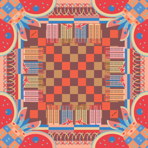 Auction ended[23] Playground Memories 100% Silk Twill Scarf by Binary Style