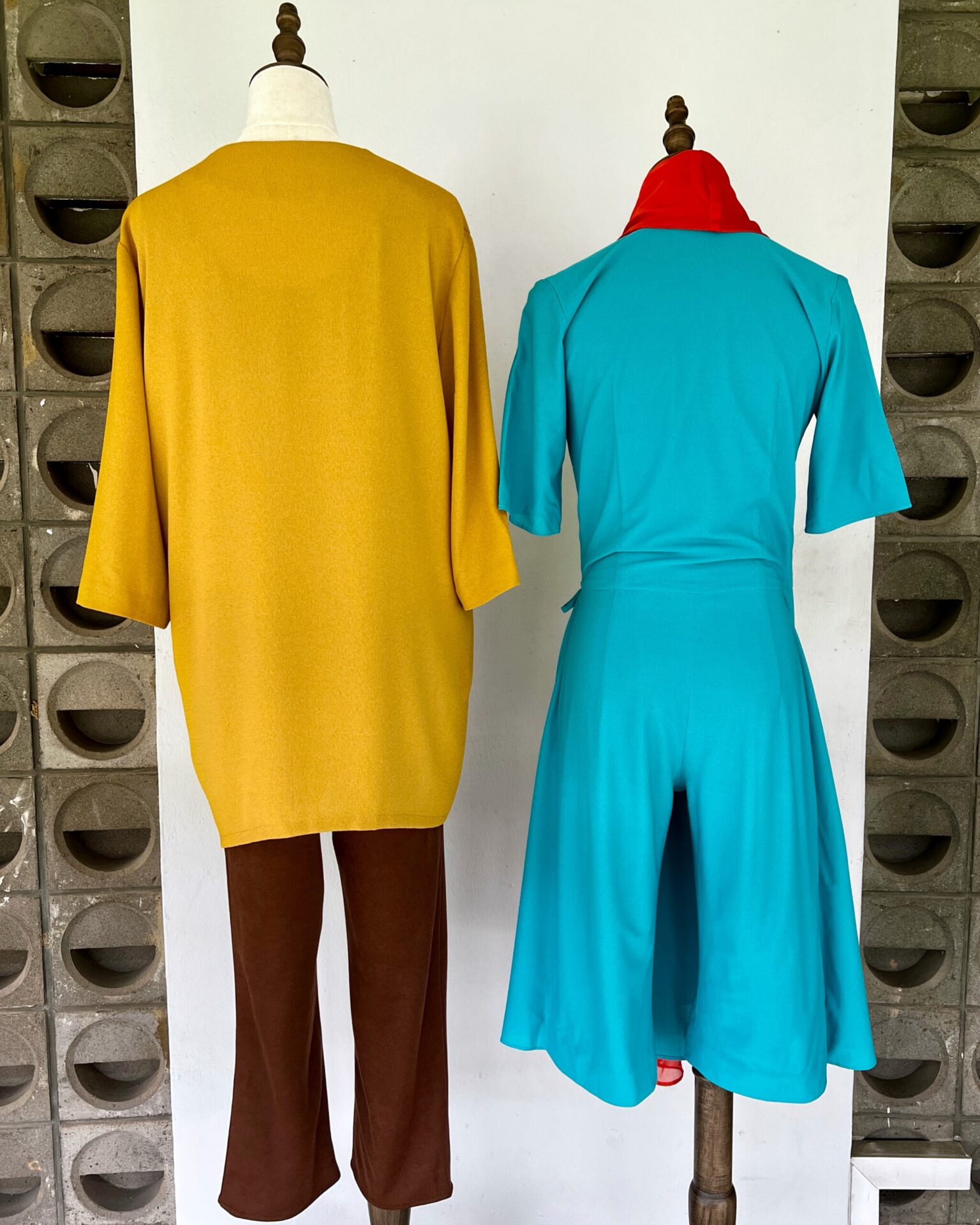 – 1 x Blue and Orange Custom-Designed Dress (with safety pants)