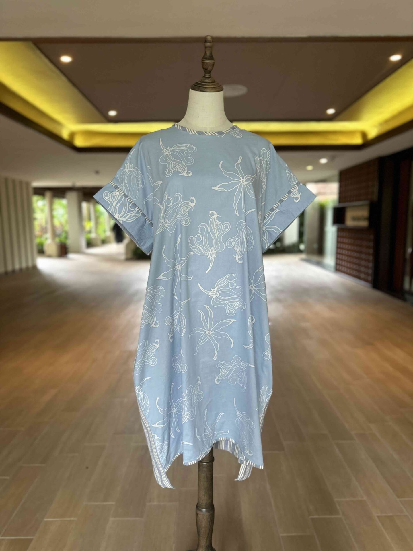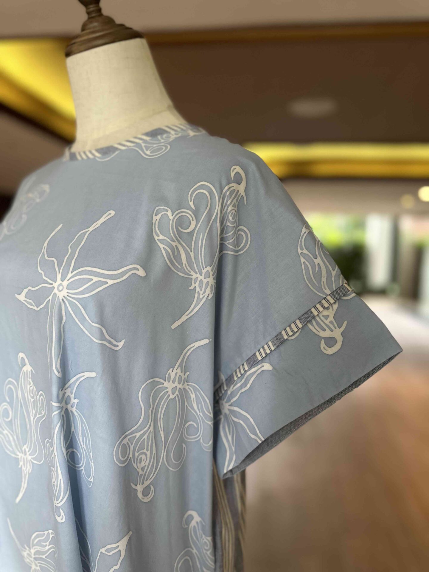 The Pelangi dress by Baju by Oniatta, fondly known as the Buffet dress, is a warm invitation to embrace the beauty of Nusantara craftsmanship. Made from 100% cotton, the dress is designed with a loose, comfortable silhouette, perfect for effortless wear. It features hand-stamped batik from Malaysia, created in collaboration with artisans in Kuala Terengganu, who bring generations of skill to each piece.