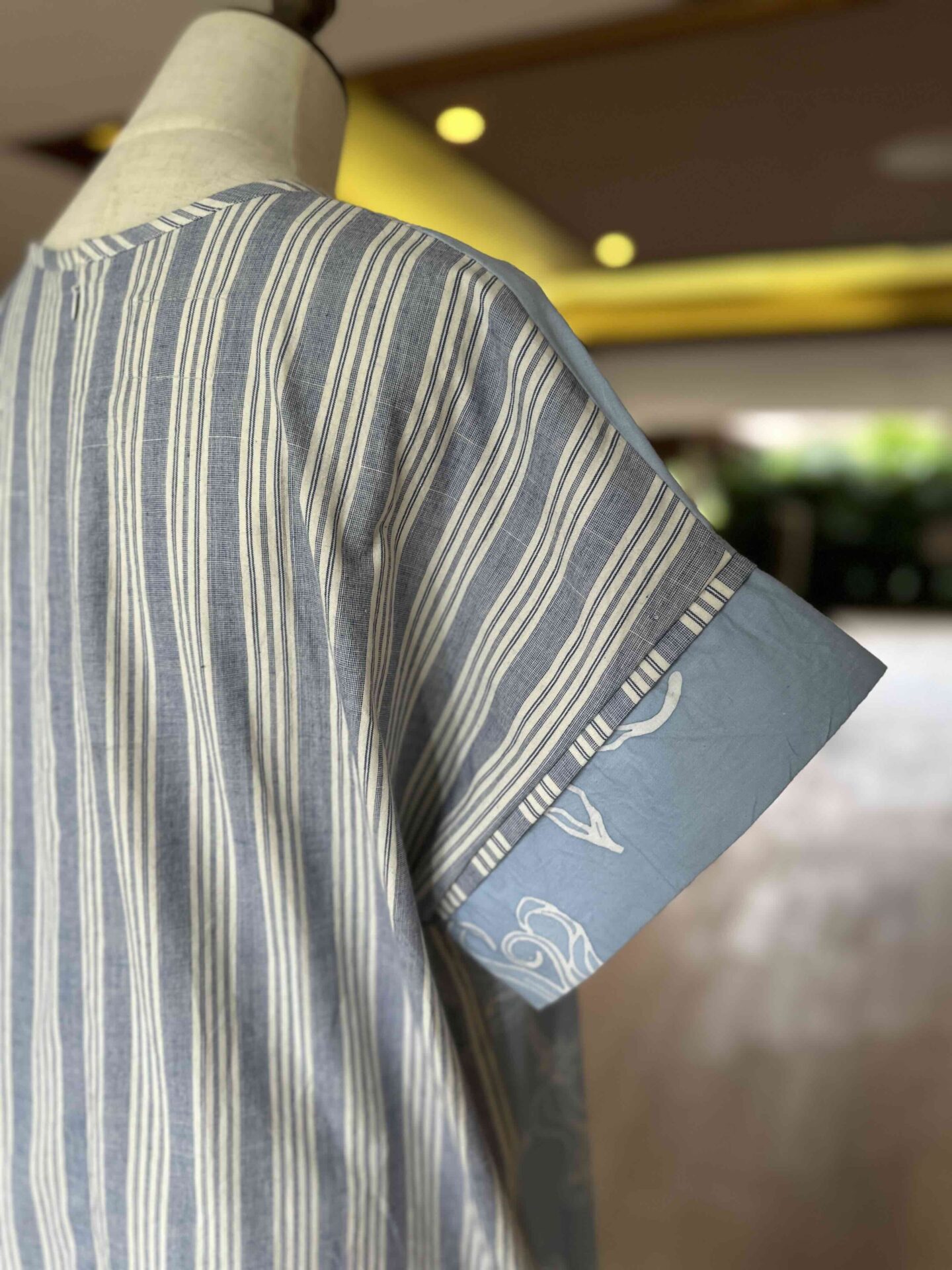 What makes the Pelangi dress even more special is its incorporation of lurik, a traditional fabric known for its simple yet meaningful striped patterns. Lurik carries with it a rich history from Indonesia, symbolising humility and the beauty of everyday life. By blending batik with lurik, the Pelangi dress becomes more than just a piece of clothing—it is a celebration of the region’s shared heritage.
